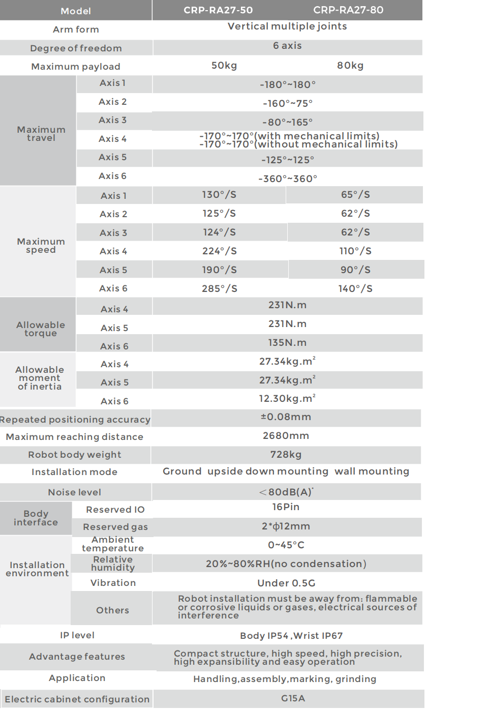 Built-in cables and gas pipe. The hollow part is set at the center of the forearm and wrist. The cables and gas pipe are built in from the base of the robot to the end of the wrist, which is more convenient forusers and improves work efficiency.