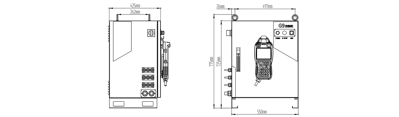 采用進(jìn)口強(qiáng)制型斷開繼電器,對(duì)外提供雙回路急停。任意急停被按下時(shí),強(qiáng)電回路和伺服單元同時(shí)緊急處理,強(qiáng)行停止機(jī)器人動(dòng)作從而實(shí)現(xiàn)安全急停。