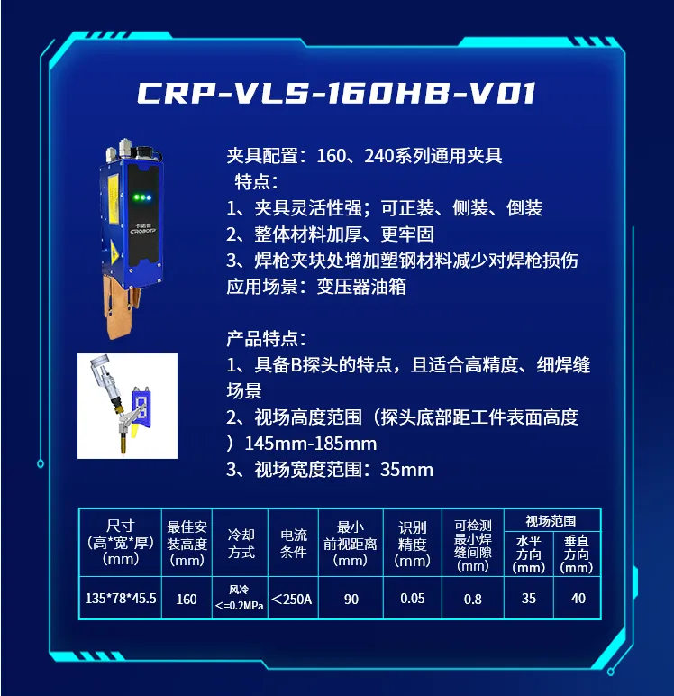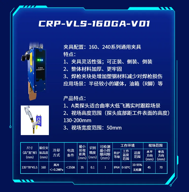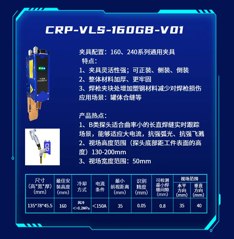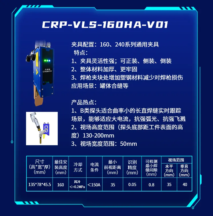 為了適應(yīng)不同的焊接場(chǎng)景,推出了CRP-VLS-330GB-V01新款機(jī)型激光焊縫跟蹤器