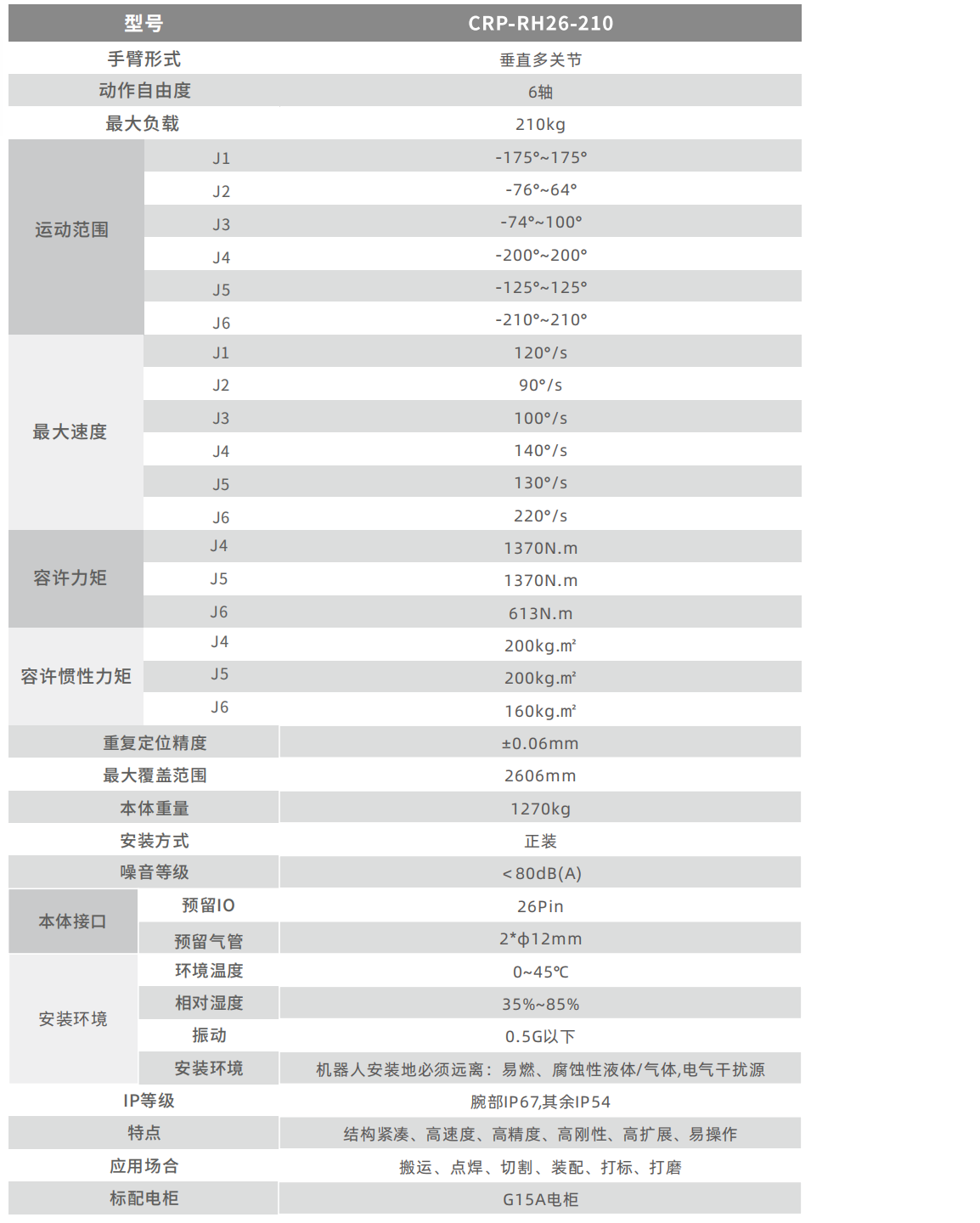 手臂電機內(nèi)置,外觀簡潔,適于狹小空間作業(yè),運動更靈活。