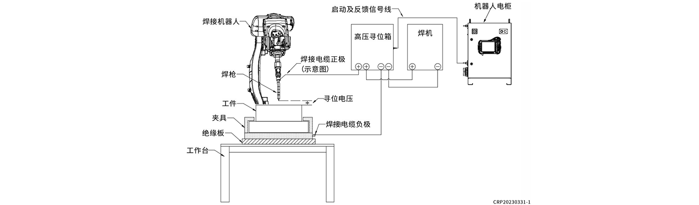 本設(shè)備配合焊接機(jī)器人的焊絲尋位功能,反饋焊絲在碰到工件的信號(hào),機(jī)器人自動(dòng)計(jì)算位置的偏差,修正位置點(diǎn),使機(jī)器人尋到實(shí)際的焊接點(diǎn)。