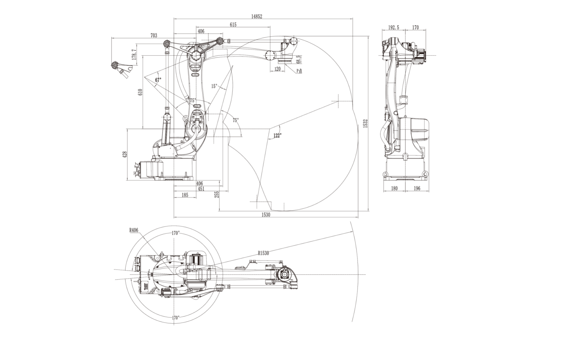 ? J4軸采用剛性更強(qiáng)的減速機(jī),承載能力更強(qiáng)。